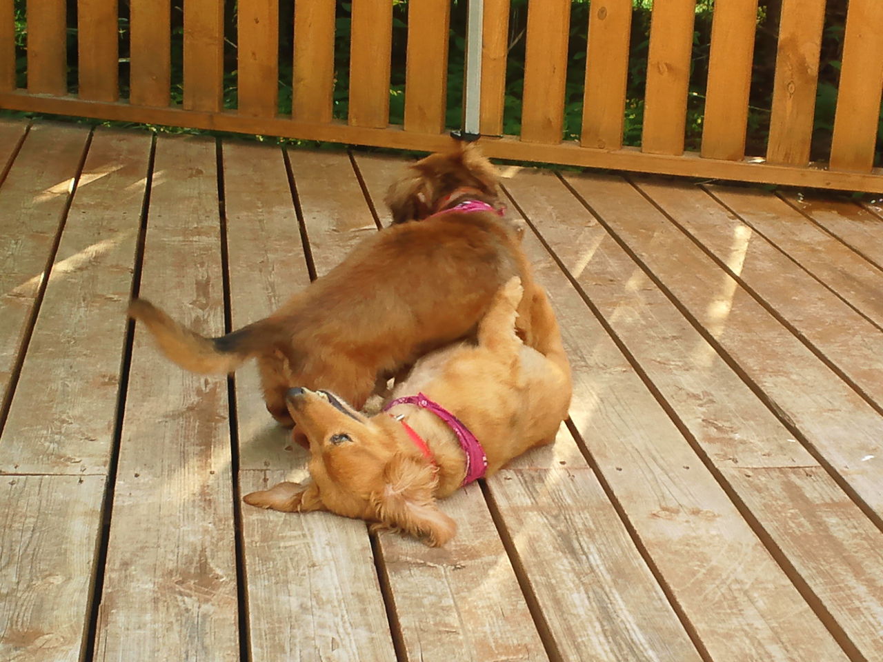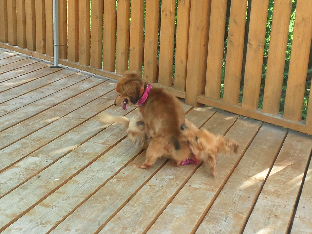 ご飯が終わってみんながマッタリしているとき、ラブくんとチャコくんがいないと思ったらデッキでじゃれあっていました!